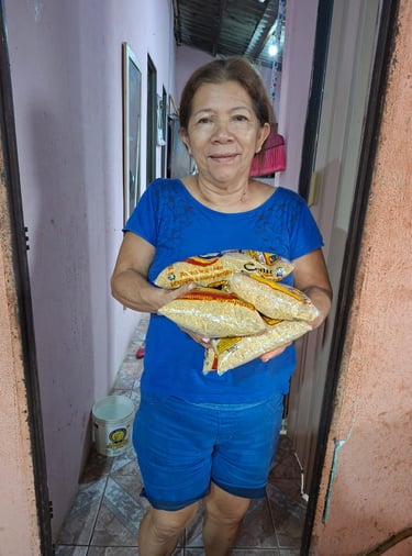 Por meio dessa parceria, recebemos 2.250 kg de farinha, que foram destinadas as famílias em situação de vulnerabilidade, levando alimento, dignidade e esperança a quem mais precisa.
